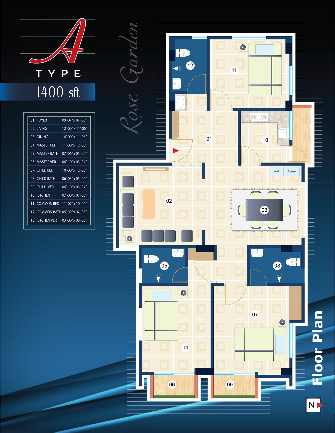 • Provision for Air conditioners in Living, Master Bed & Child Bed Room.