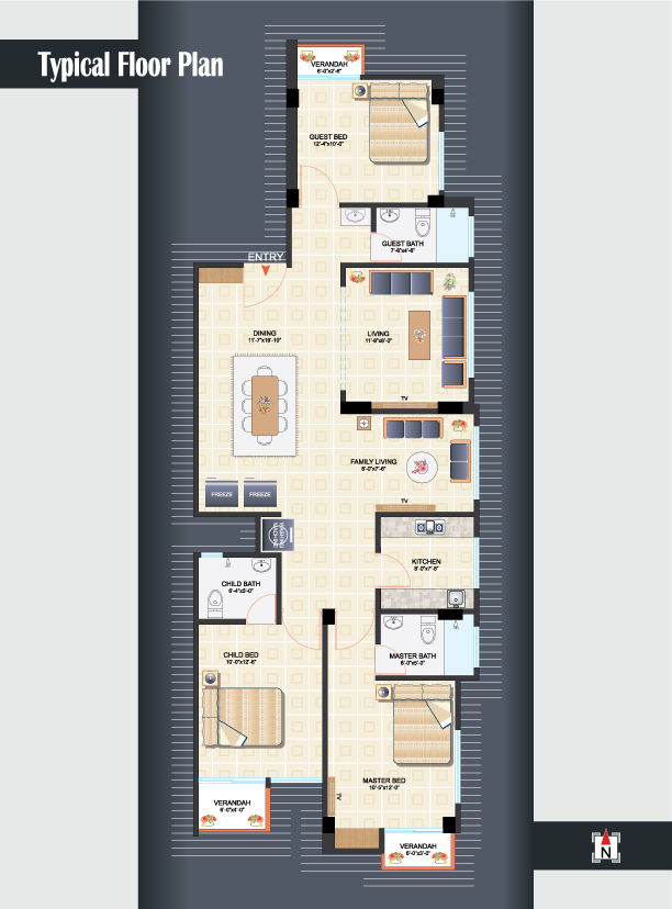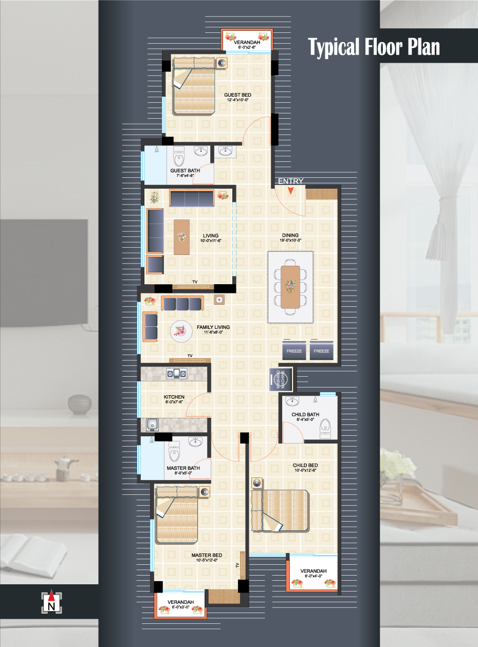 - Provision for Air conditioners in Living, Master Bed & Child Bed Room.